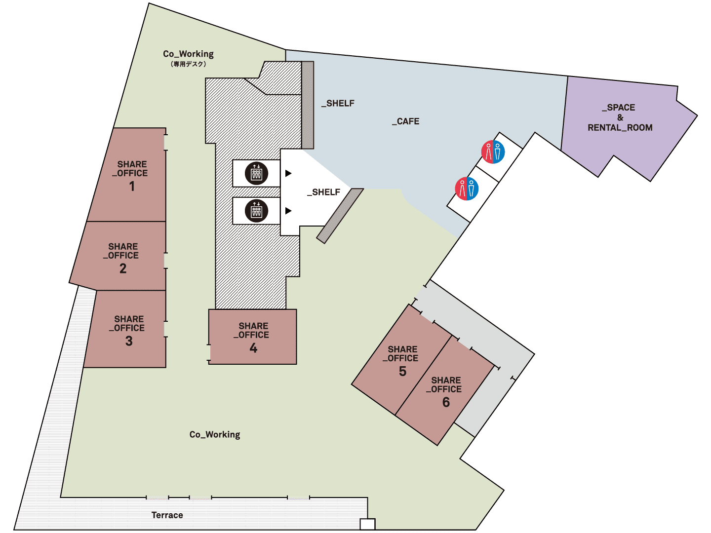 イベント開催時は一部スペースをご利用頂けないことがございます。